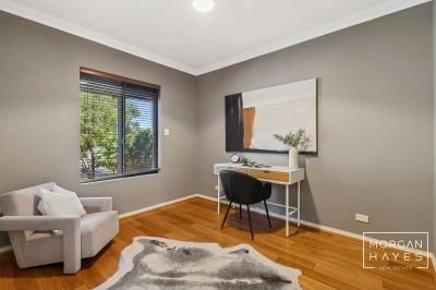 At the front of the home, a dedicated study with bamboo flooring and electric roller shutters provides an ideal work-from-home setup or quiet retreat for homework and reading.
