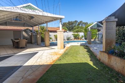 Outdoors is where this home truly shines. A spacious alfresco area flows effortlessly from the living zones, creating the perfect setting for entertaining family and friends. The sparkling pool, framed by glass balustrading, offers a resort-style feel, complemented by multiple seating areas, manicured lawns, established gardens, bore reticulation and a garden shed. Whether hosting summer gatherings or enjoying quiet afternoons, this is a backyard designed to be lived in and loved by all.
