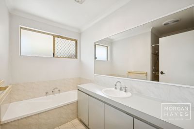Accommodation is generous with three well-sized bedrooms, all enjoying ducted air conditioning vents and large windows for natural light. The master bedroom features both double-door and single-door built-in robes, providing great storage, while the shared bathroom is neatly finished with a bathtub, shower recess, and plenty of vanity space.